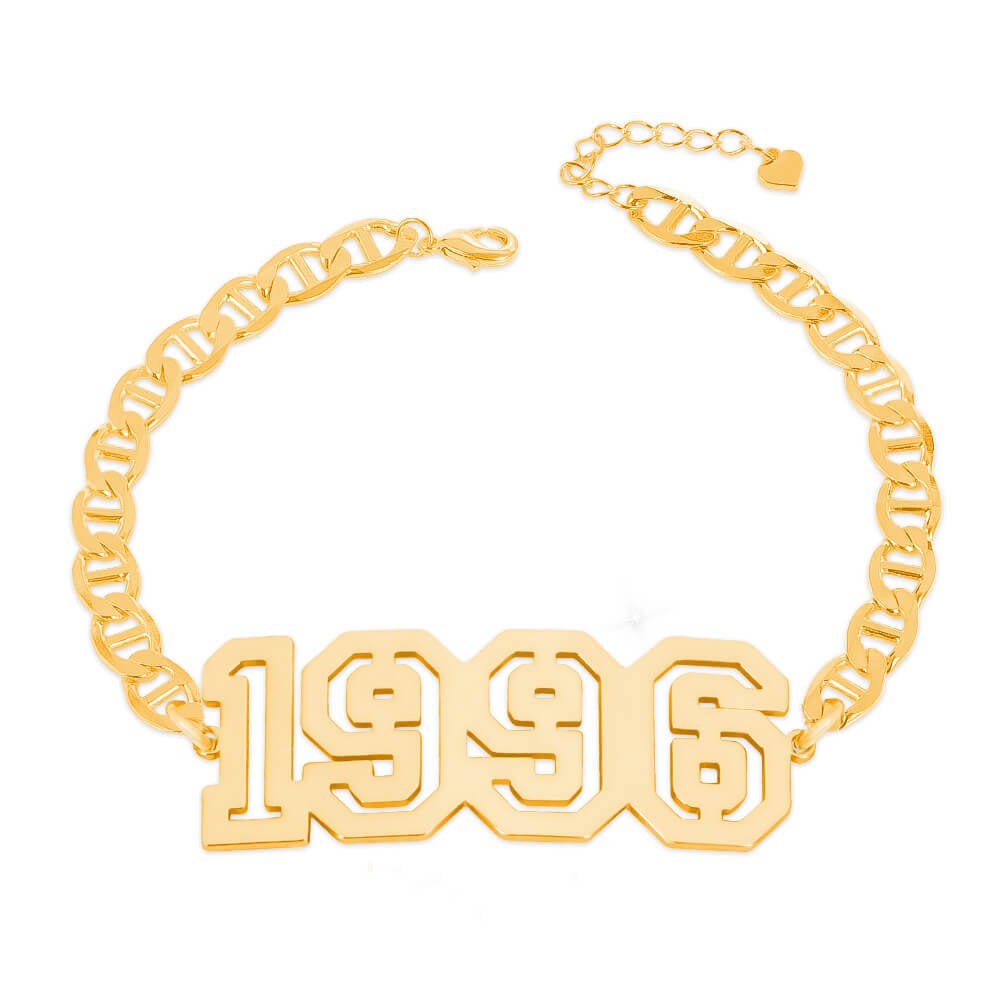 Hollow Number Year Personalized Custom Gold Plated Number Bracelet